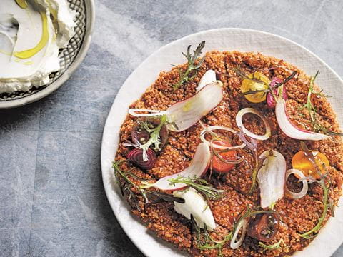 Simply cooked line-caught fish with this beautiful tomato kibbeh. I don't know how you could top it.