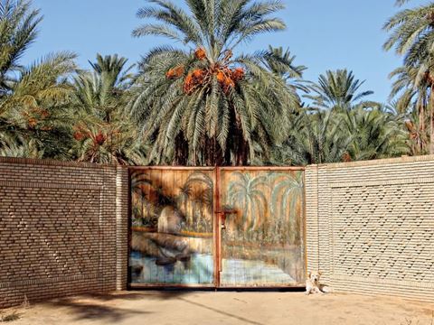 Along the northern edge of the Sahara, in the part of Tunisia called Bled el-Djerid—Land of the Palms—the regular pruning of vast date-palm orchards literally fuels a centuries-old brickmaking industry, and local bricklayers have taken the kiln-fired masonry to heights of artistry. Throughout the city of Tozeur and the nearby town of Nefta, bricks set in patterns decorate facades, windows, doors and arches with motifs from desert life, textiles and other traditions. The results not only dance with the changing angles of the sun, but also create just enough shade to help cool the buildings behind them.