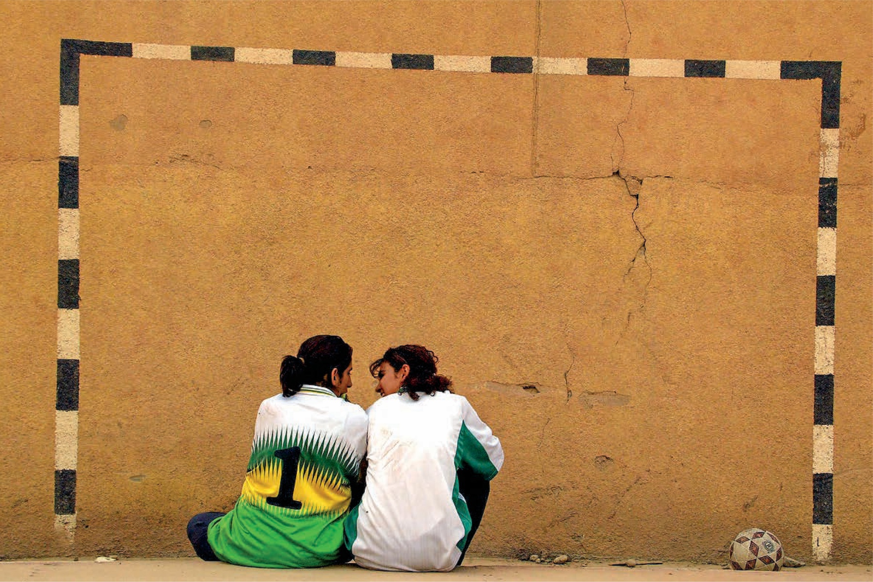 Football certainly plays host to hopes and prayers. Yet even if prayers go unanswered as we hope, we use the game as a form of fellowship and communion, as evidenced by two Iraqi girls sitting together after play. One can do drills alone, but add a second person and it starts to take shape as a familiar dance that feels like football. This engagement and interactivity nourish, whether it’s two friends passing back and forth or a nation with high hopes that an impending World Cup will be its year.