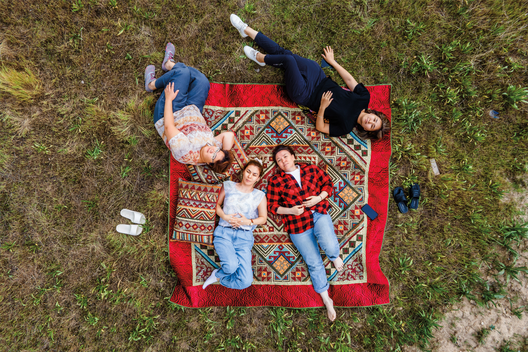 From a studio overlooking the foothills of the Zailiysky Alatau Range near Almaty, Kazakhstan, three women are quietly working on their next piece of a blanket made in kurak, a traditional Kazakh patchwork technique. They are apprentices of a kurak master and founder of a school dedicated to helping this style of art to rebound.