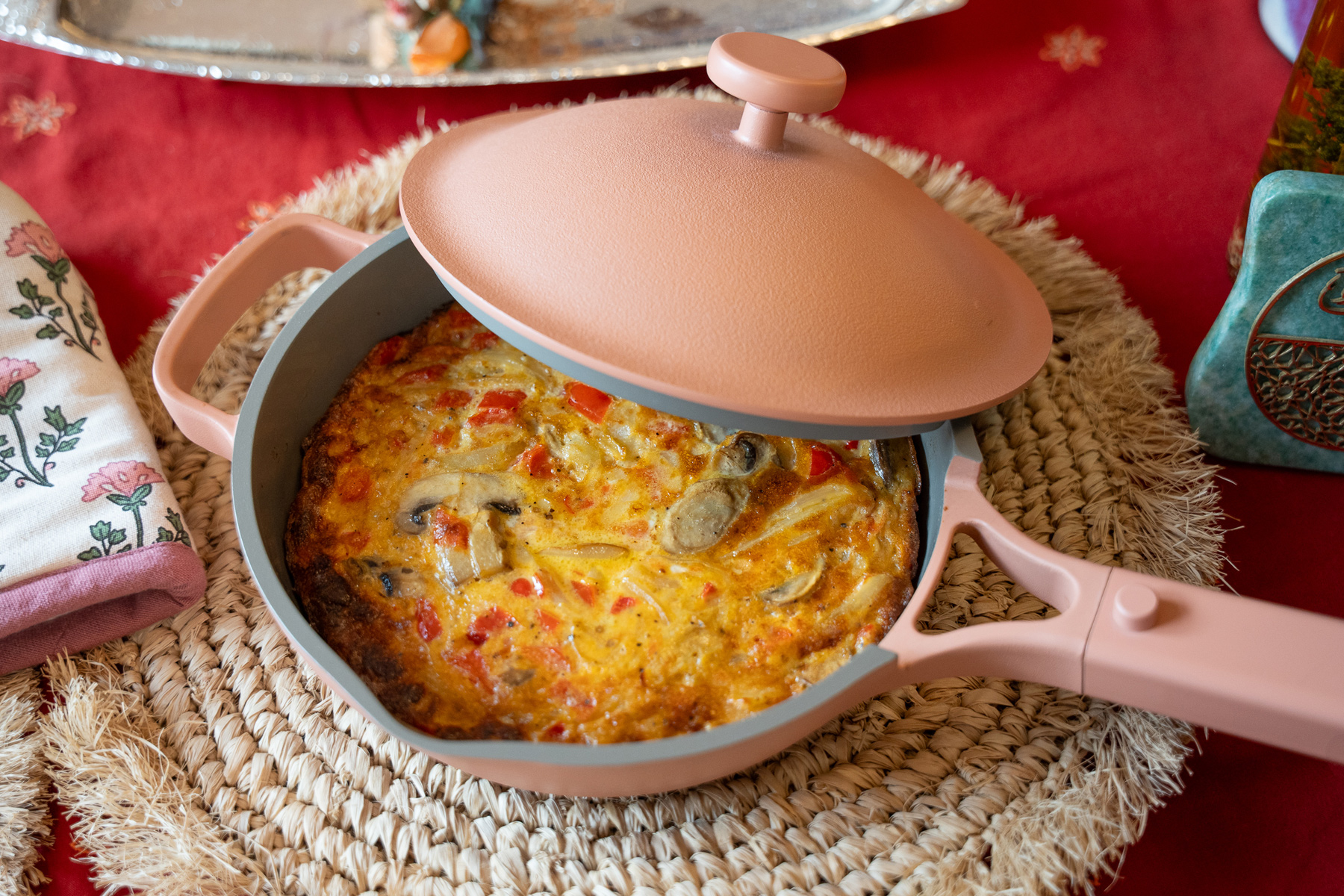 To finish, I place the pan under a preheated medium grill to broil the top for 4-5 minutes—just until the surface becomes golden and set (Koehler encourages me to try flipping it, but I stay with what feels right.)