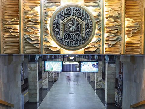 In Tashkent, the capital of Uzbekistan, the subway system offers more than practical travel. Called Toshkent Metropoliteni, or the Metro for short, it also transports passengers on a symbolic journey through Uzbek history. Each of its 29 stations was designed by an individual artist, and together they honor a pantheon of cultural heroes—writers, composers, scientists and more—as well as historic resources such as cotton and almonds. As breathtaking as they are informative, each metro station is a chapter in a story told in tileworks, murals and mosaics amid elegantly thematic lighting and architecture.
