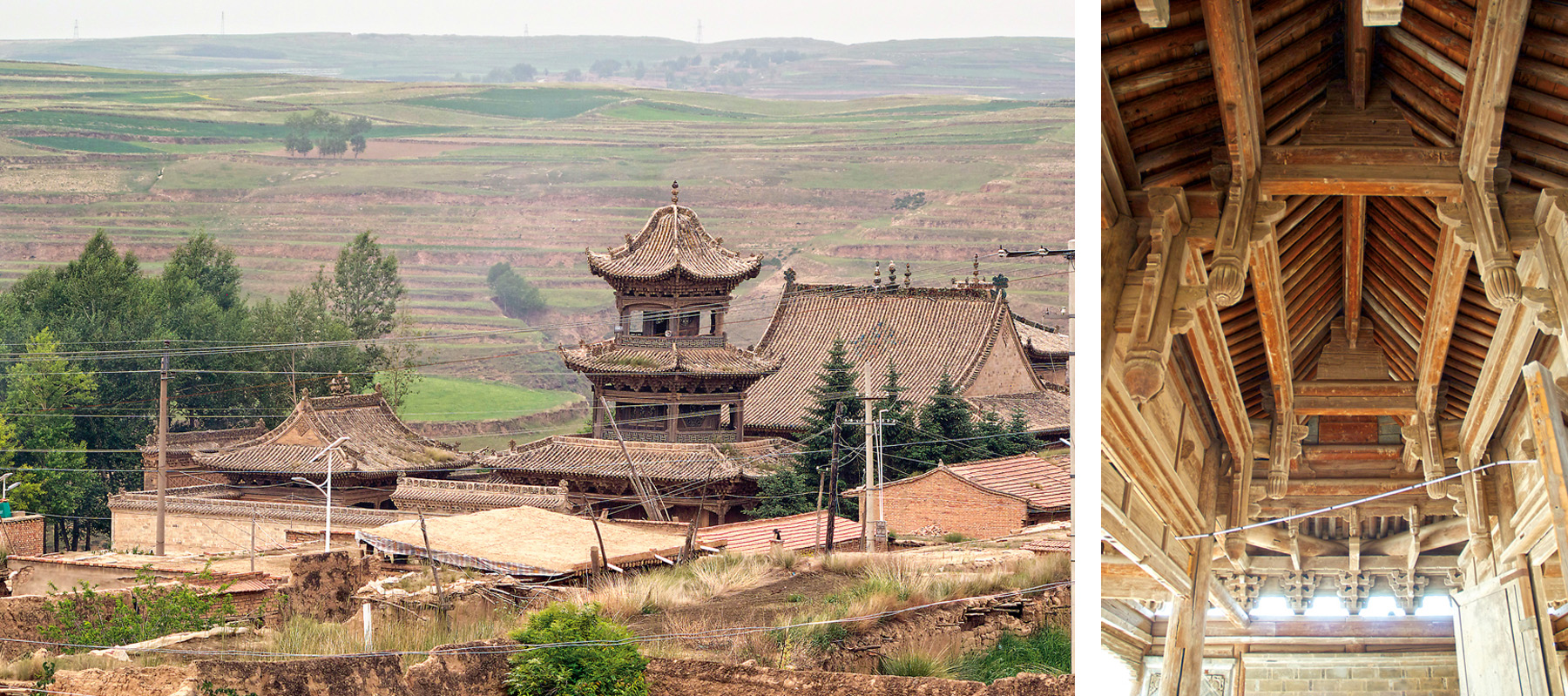 On the upper reaches of the Yellow River, in Qinghai, the Hongshuiquan mosque is one of the best-preserved, most evocative mosques in central China. Its entrance hall, right, displays an extraordinarily clear example of a traditional Chinese timber-frame construction, in which all the posts, beams and supporting brackets are slotted together with mortise-and-tenon joints that use no metal nails or screws.