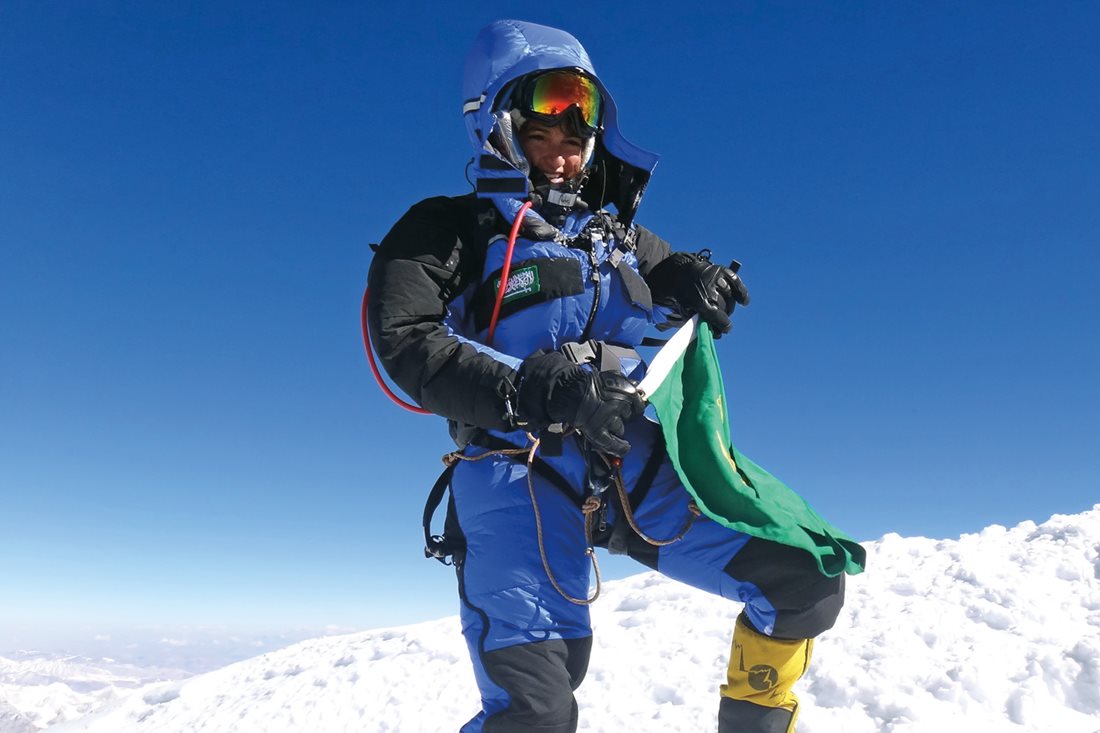 Training for Raha Moharrak’s ascents of the seven summits included technical ice climbing. “I’m always interested in new peaks, but I love ice climbing. I love the feeling of steel on ice,” she says.