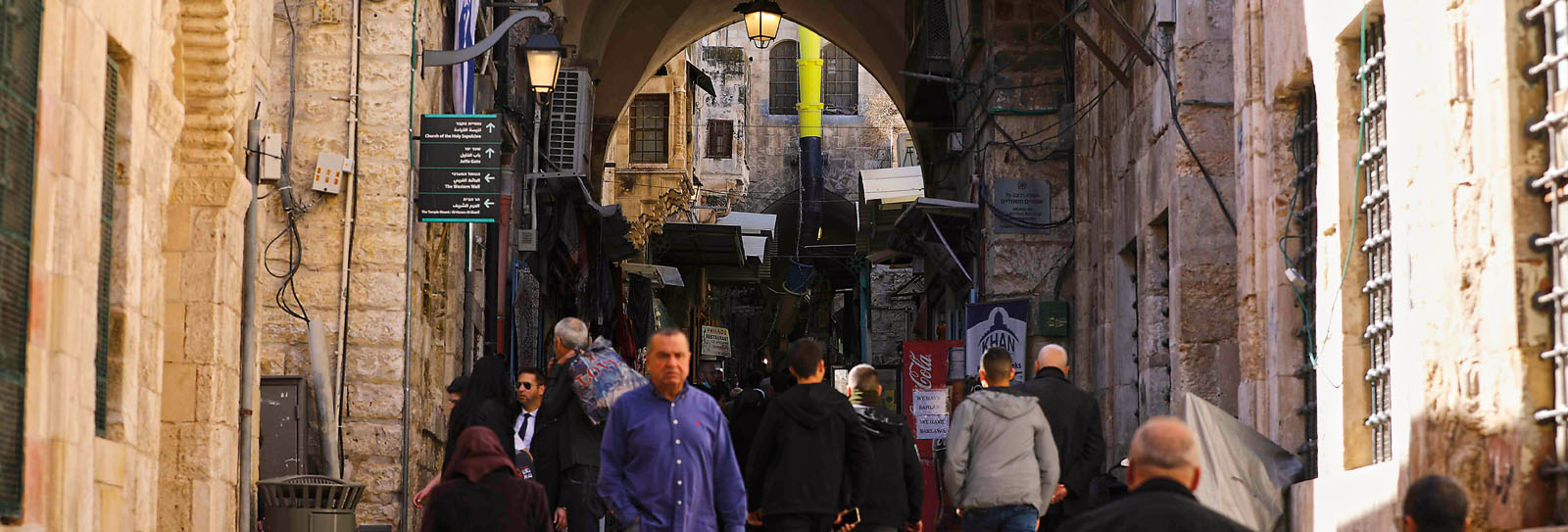 The busiest of Jerusalem’s lanes is Suq Khan al-Zeit. Suq means market, a khan is a caravanserai, and zeit is oil, specifically olive oil. For hundreds of years, into the 20th century, this crowded street was lined with workshops where olives would be pressed and the oil stored for sale or processed into soap.