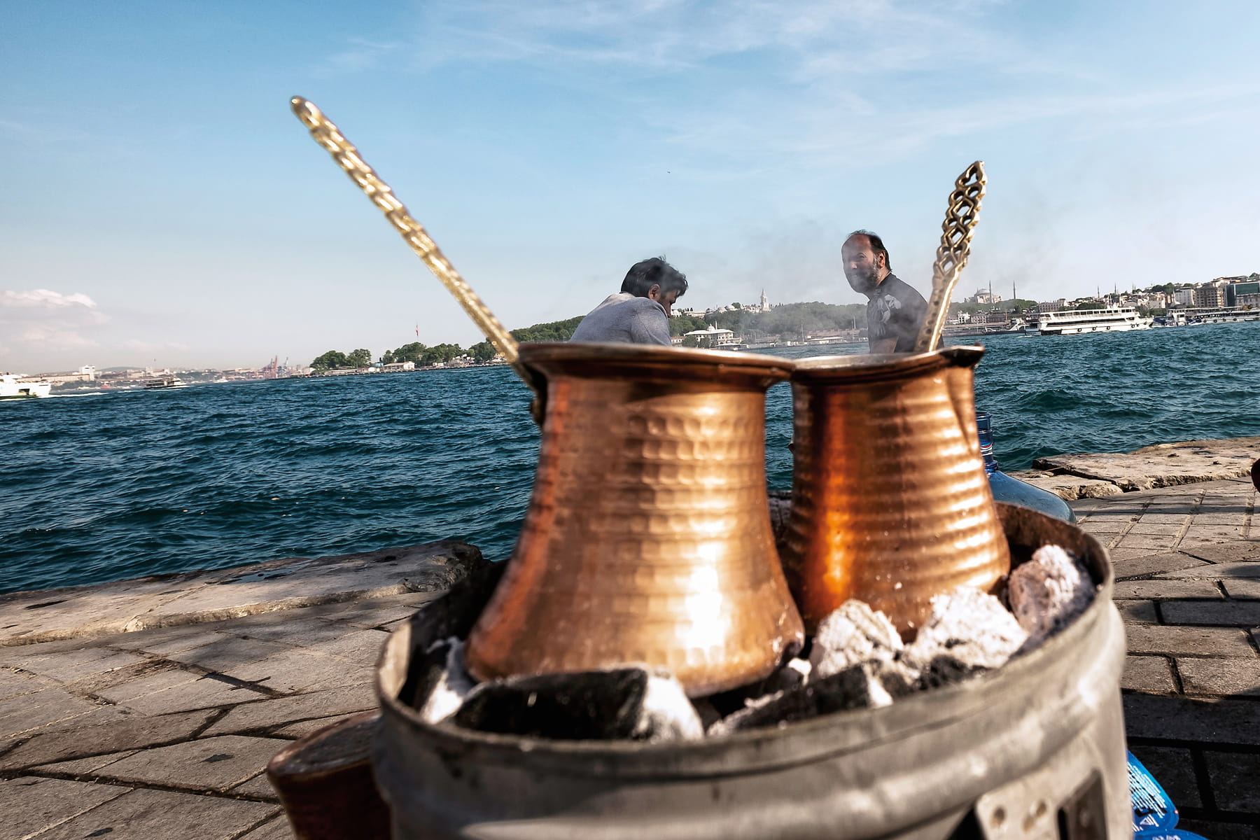 That was exactly what I felt while taking this photograph in 2019. The copper coffeepots bubbling by the Bosporus Strait were not just brewing coffee; they were adding a new note to the rhythm of the city. The rising steam mingled with the salty air while the figures in the background completed the atmosphere. The reflective surface of the pots has always felt like an instrument to me, playing an invisible melody within the image.