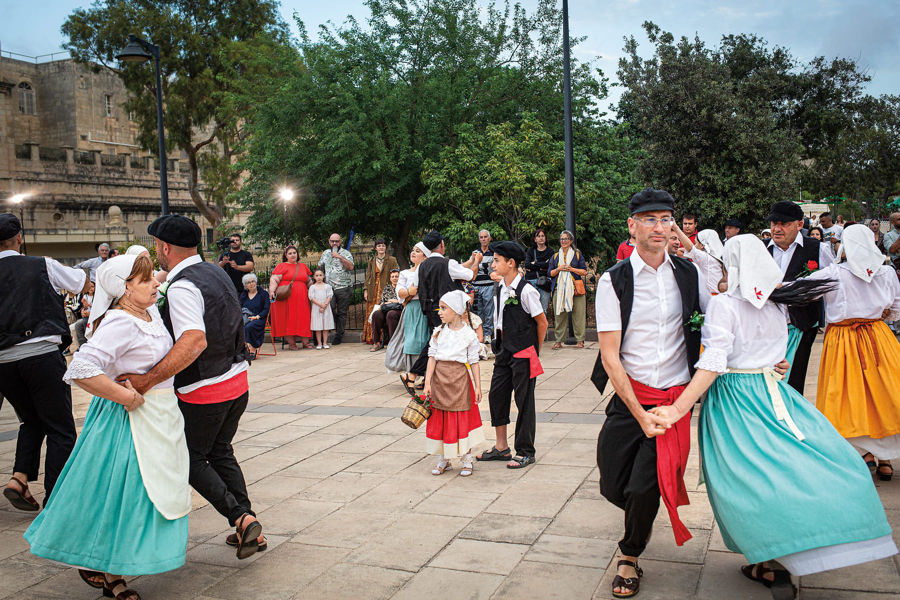 Day 3 of the festival is spread throughout the Argotti Botanical Gardens in the town of Floriana. Folk dancers wearing traditional cloaks called għonnella (for women) and faldetta (for men) participate in "Il-Maltija," Malta's national dance.