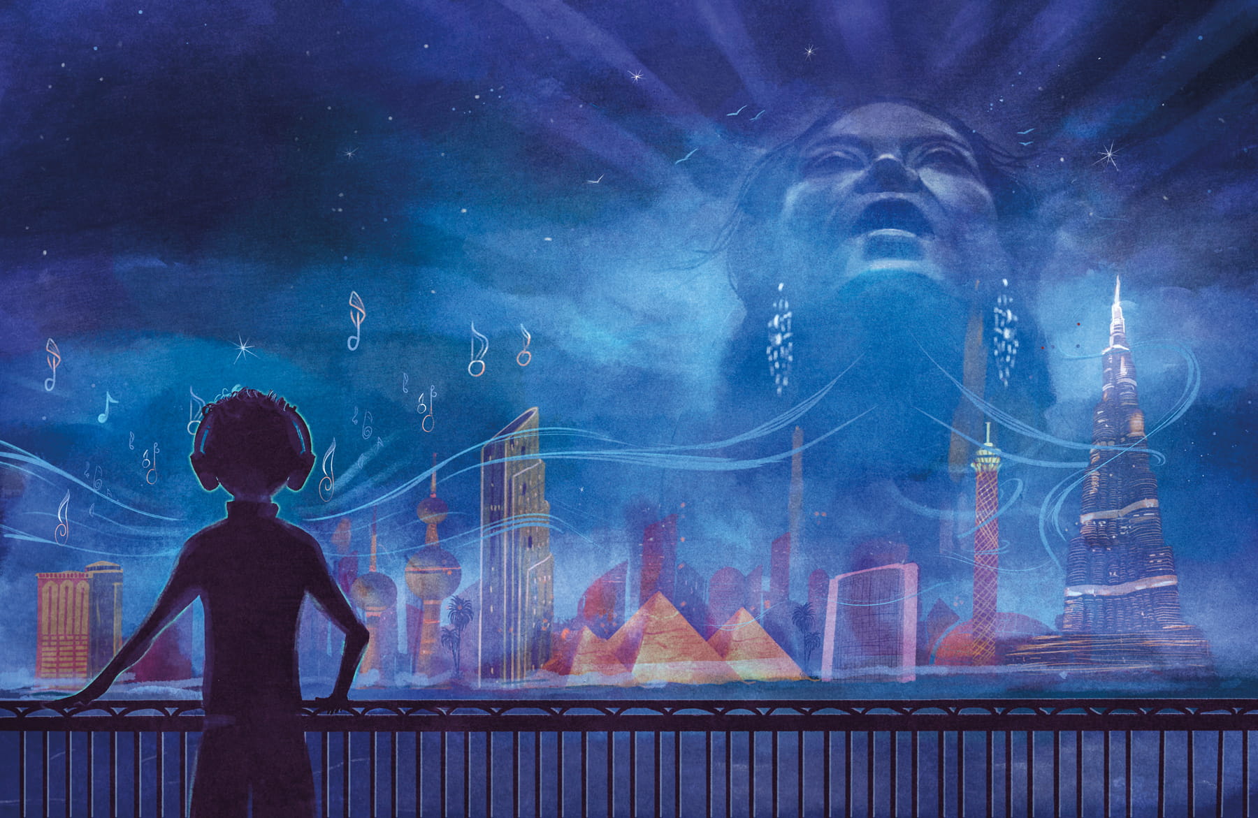 I also wanted the book to feel Egyptian. I requested that Interlink, the book's publisher, find an Egyptian illustrator, and they found Ahmed Abdelmohsen, who did an amazing job of infusing his drawing with details of Egyptian culture and the countryside that really only an Egyptian could bring-because whereas all Arabs loved Umm Kulthum, she is really an Egyptian icon. Egypt's fourth pyramid!