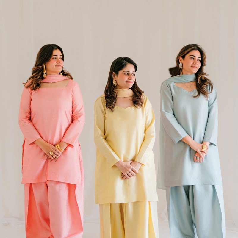 Residing in Addis Ababa, Ethiopia, Hira brings global perspective, partnerships and strategy; Hajra leads much of the brand's campaigns and narrative storytelling from Rome; and Hina guides design and oversees production from Lahore, Pakistan.