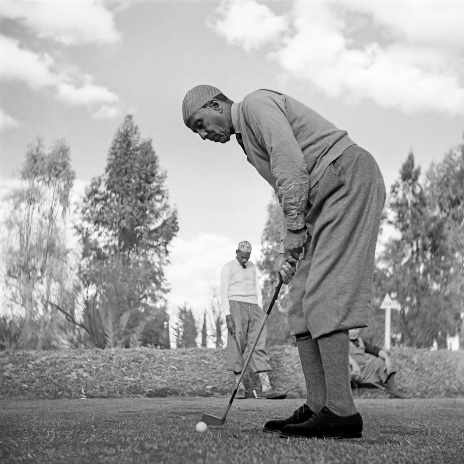 The pasha of Marrakech, Morocco, Thami El Glaoui, plays golf in April 1946.