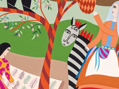 Artist Helen Zughaib was born in Beirut. She received a bachelor’s degree in fine arts from Syracuse University’s College of Visual and Performing Arts. Her most recent solo exhibitions were at the Arab American National Museum, which hosted the full original series “Stories My Father Told Me,” and at University of Maryland University College and the Mamia Bretesche Gallery in Paris, which showed “Conflict Within.” She lives and paints in Washington, D.C.