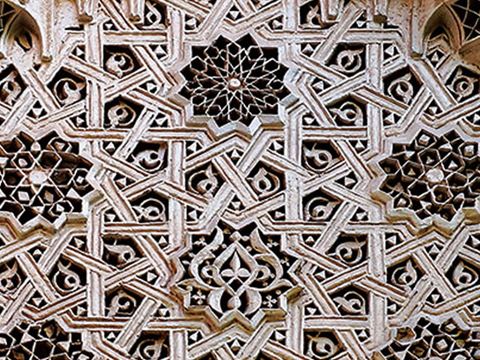 Decorative and functional, lattice screens have been produced in countless geometric forms across Islamic lands over centuries. In New Delhi one such screen, there called a jaali, offers mesmerizing interplays of 6- and 12-sided figures. Originally crafted in the 16th century, it can be drawn today by following our step-by-step guide.